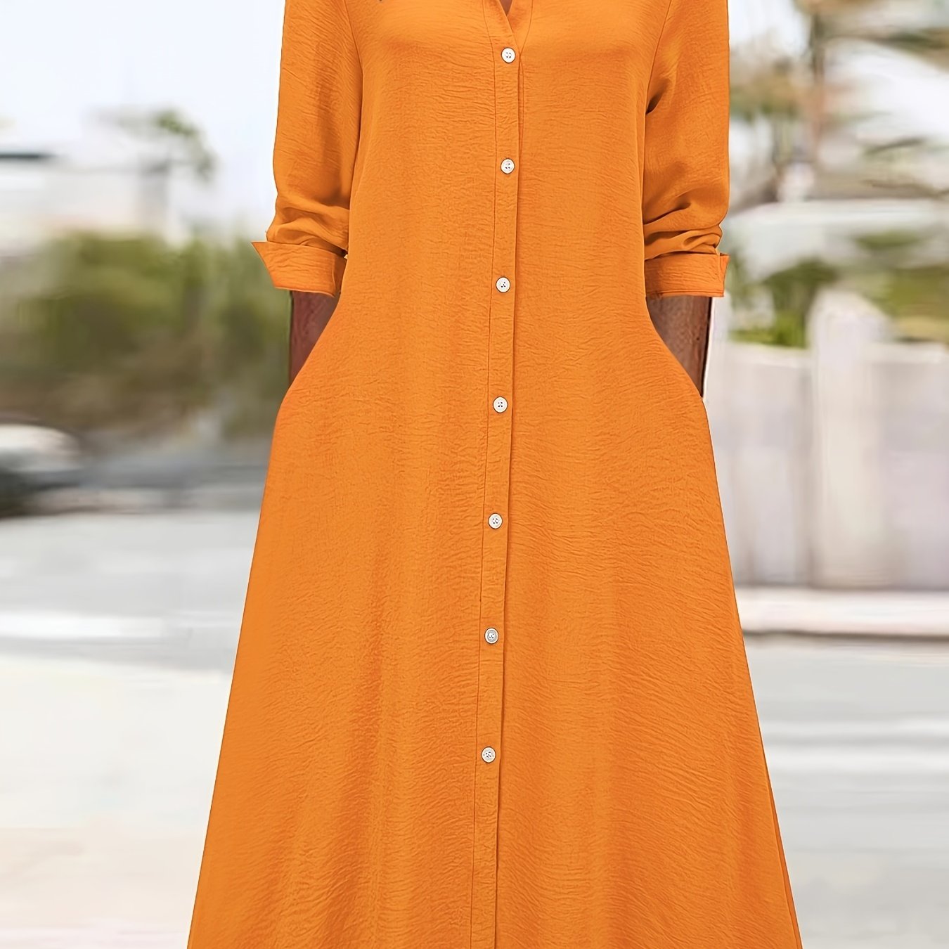 Paloma™-ชุดเดรสเชิ้ตแขนยาวสีพื้นหน้าแบบปุ่ม